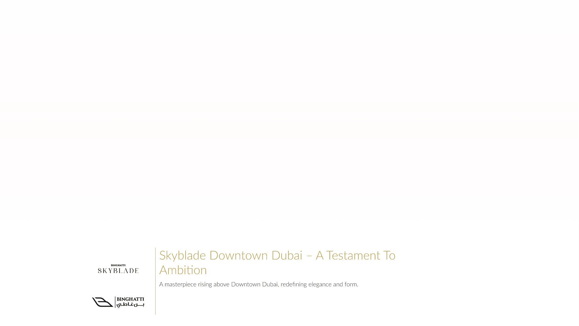 With completion scheduled for Q4 2027, Binghatti Skyblade is more than a residence — it is a statement of prestige, sophistication, and architectural mastery. Discover a new dimension of living where the sky truly meets perfection.